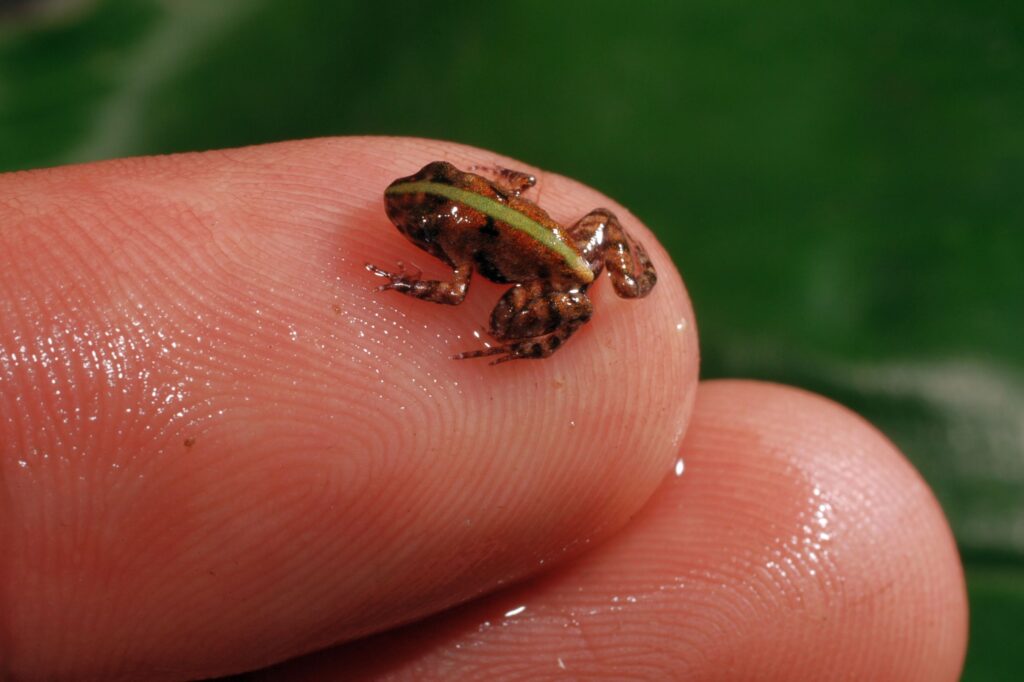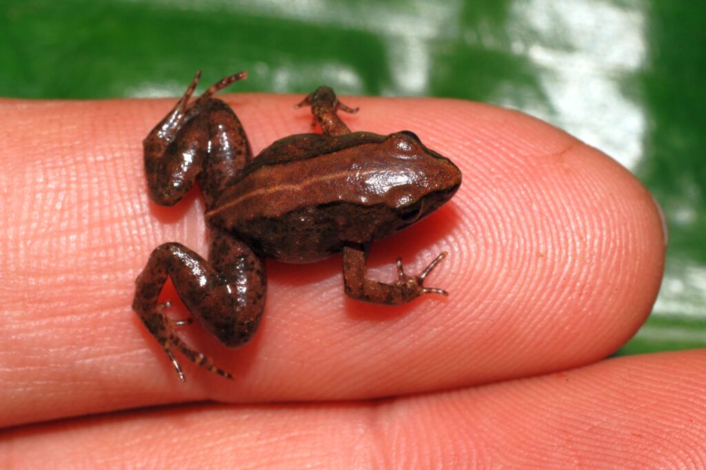Afroskokan tajemný (Phrynobatrachus arcanus), mládě