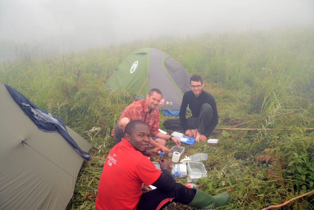 Část týmu v průběhu zpracovávání získaného zoologického materiálu.